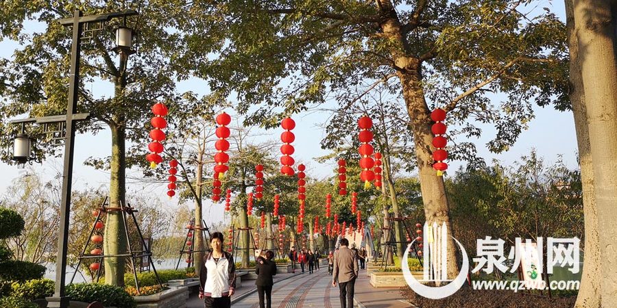 泉州网2月2日讯(记者王金植 通讯员林桂华 吴斐斐 文/图)泉州市区西湖公园、东湖公园、中山公园、芳草园、释雅山公园、郑成功公园、滨海公园、刺桐公园等八大公园装扮起来,高高挂上了串串大红灯笼,盛装迎新春的到来,花簇锦丛迎接游客。