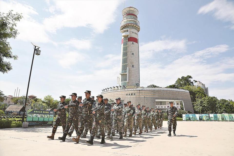 民兵在南炮台哨所前集训。 林洁 摄