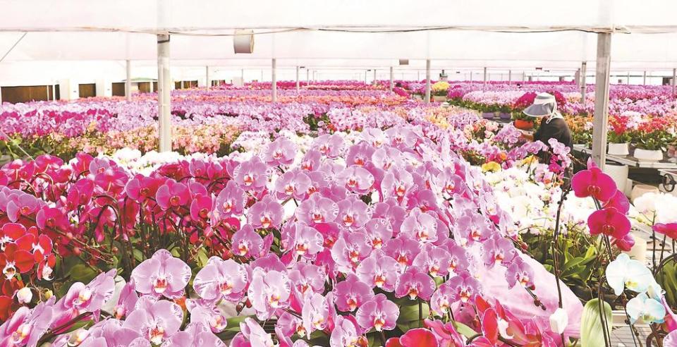 1月14日,在福清台湾农民创业园闽台天农园艺基地,苗床上各色蝴蝶兰竞相开放、花姿优雅,一片片绚烂的花海呈现眼前。春节临近,福清台湾农民创业园区内的蝴蝶兰迎来盛花期,漂亮的蝴蝶兰成为许多消费者的“心头好”,走俏年宵花市场。