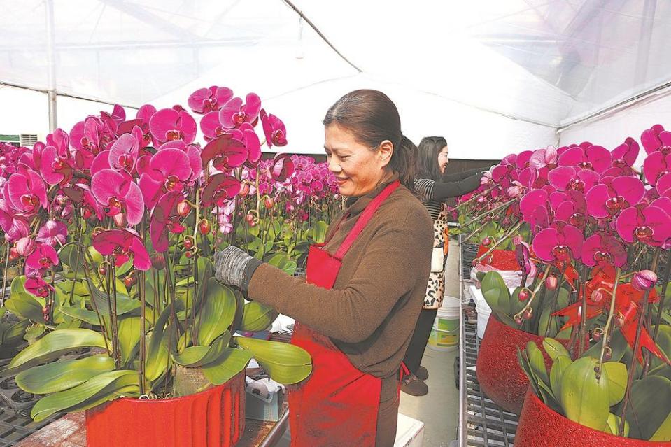 在闽台天农园艺基地,记者看到,工人们正根据花卉色彩和品种进行组盆、包装,不少花植上还装饰了喜庆的祝福卡、蝴蝶结,营造出浓郁的节日氛围。大棚外,一批完成包装的蝴蝶兰正在装车,准备发往福州市场。