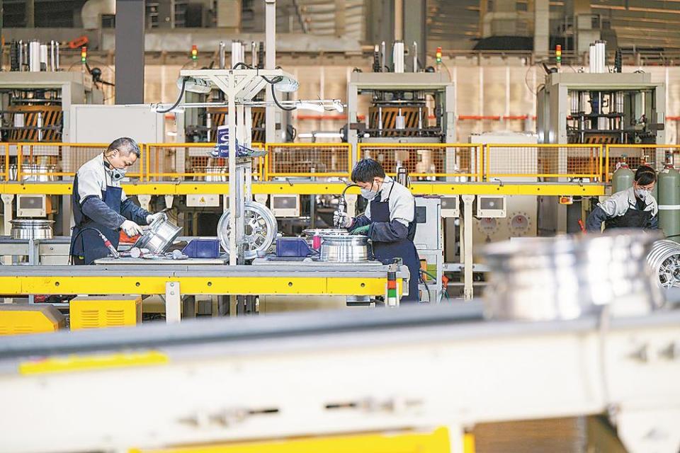 1月20日,在位于南安市的福建申利卡股份有限公司铸造车间,全自动化流水线高速运转,工人在对下线的轮毂进行检查。
