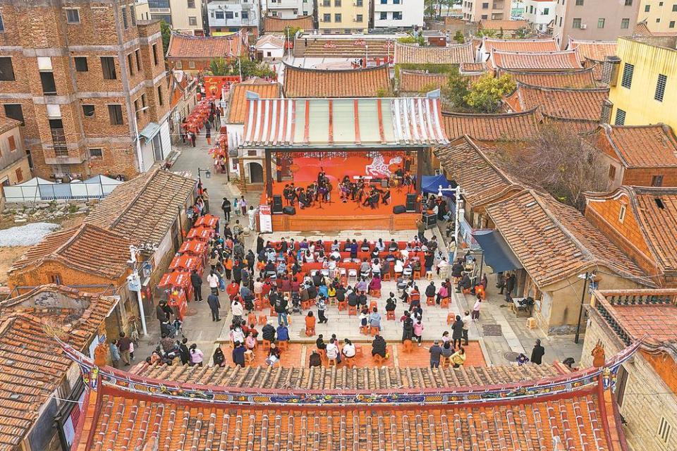 腊月的海风拂过大嶝岛田墘社区的红砖厝聚落,欢声笑语驱散了海岛冬日的寒意。2月1日,一场名为“墘来福到·斗阵迎新”的新春庆典活动在这里举行。