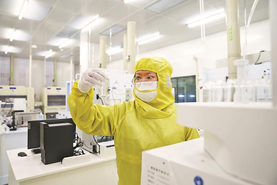 2月24日,位于上杭蛟洋新材料产业园的福建天甫电子材料有限公司的电子实验室里,技术人员正进行实验操作与数据分析。目前,该公司正开足马力全力冲刺一季度“开门稳”“开门红”。李新元 林燕萍 摄