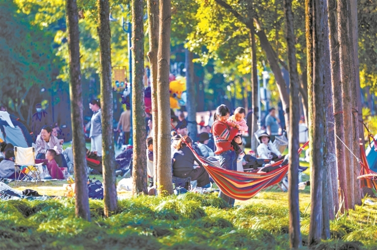 周末,市民在南岸公园露营休闲,享受欢乐时光。记者 王志凌 摄