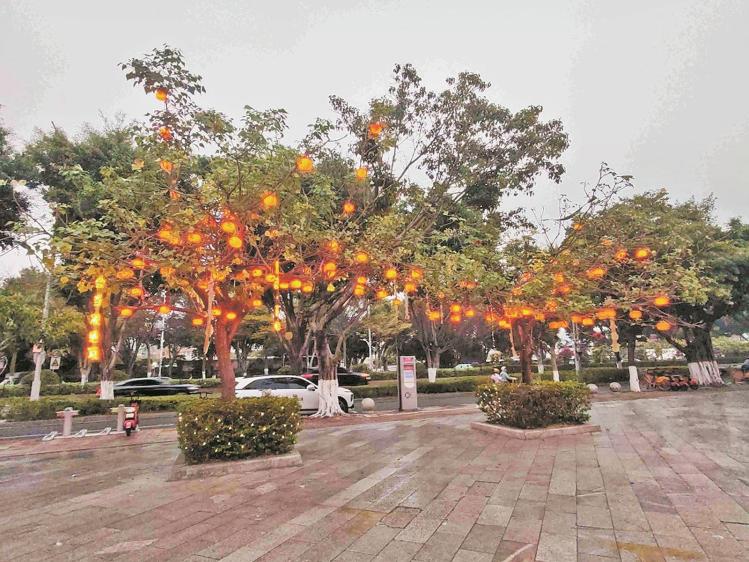 夜幕降临,真武庙门口的100余盏柿子花灯率先亮起。暖橙色的光缀满枝头,远远望去,整棵树仿佛挂满了熟透的柿子,传递着“柿柿如意”的新春祝愿。展区内,红色百福灯与传统宫灯依次排开,彩扎鱼灯灵动飘逸,彩扎宝莲灯庄重雅致。各式花灯一齐亮起,与景区内红砖瓦厝相互映衬,年味与古韵交融,氛围感十足。真武庙广场上,“凌波骐骥”艺术装置格外醒目、气势十足。“春节前花灯就亮起了,一到晚上特别好看,好多人特地过来拍照。”附近商铺老板李女士告诉记者,临近元宵,前来赏灯的市民和游客增多,真武庙的夜晚更加热闹。